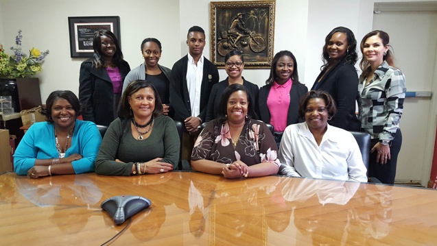 OUCP works closely with the Newark Workforce Investment Board (NWIB) of the City of Newark to secure work assignments for the students. In addition to the obvious monetary benefits, these internships allow RURFW students to explore prospective careers, network with potential employers, establish meaningful relationships with mentors, gain a realistic perspective on an occupation, and learn a profession or industry’s culture and etiquette.At a special NWIB fundraising reception, several current and former RURFW students had an opportunity to hone their public-speaking skills when asked to share with NWIB stakeholders and funders their stories of the positive impact RURFW has had on their lives. To show appreciation for these students’ diligence, scholarship, community service, and contribution and commitment to the RURFW program throughout the past year, NWIB Executive Director Amina Bey, along with other NWIB staffers, recently stopped by OUCP to present $200 stipends to five highly motivated participants: high school seniors Grace Appiah (Barringer High School) and Dihzai Bailey (University High School); high school junior Kory West (Marion P. Thomas Charter School); and RURFW alumnae Attiyyah Calloway-Muhammad (senior, Rutgers School of Nursing) and Roxanne Hall (OUCP AmeriCorps VISTA fellow and RU-N alumna). Recognizing that financial hardship is one of many roadblocks on the journey to success, the stipends are intended to defray the cost of books and school supplies incurred by the students and provide overall encouragement. Eager smiles filled the room as NWIB signed and distributed each check.